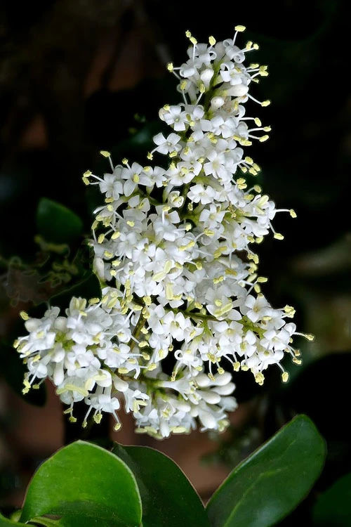 Growing 6 to 12 feet tall and 6 to 8 feet wide, the Waxleaf Ligustrum is perfect to create a relatively quick evergreen hedge or privacy screen. It responds very well to pruning for hedges as low as 5 feet and various topiary forms ranging from globes and pyramids to pompom. As this Ligustrum grows lower branches can be removed to form a very attractive evergreen flowering focal point specimen tree for use in landscape borders and home foundation plants. A fine addition to fragrance gardens, white theme gardens, Asian theme gardens, and the Xeriscape (low water needs).